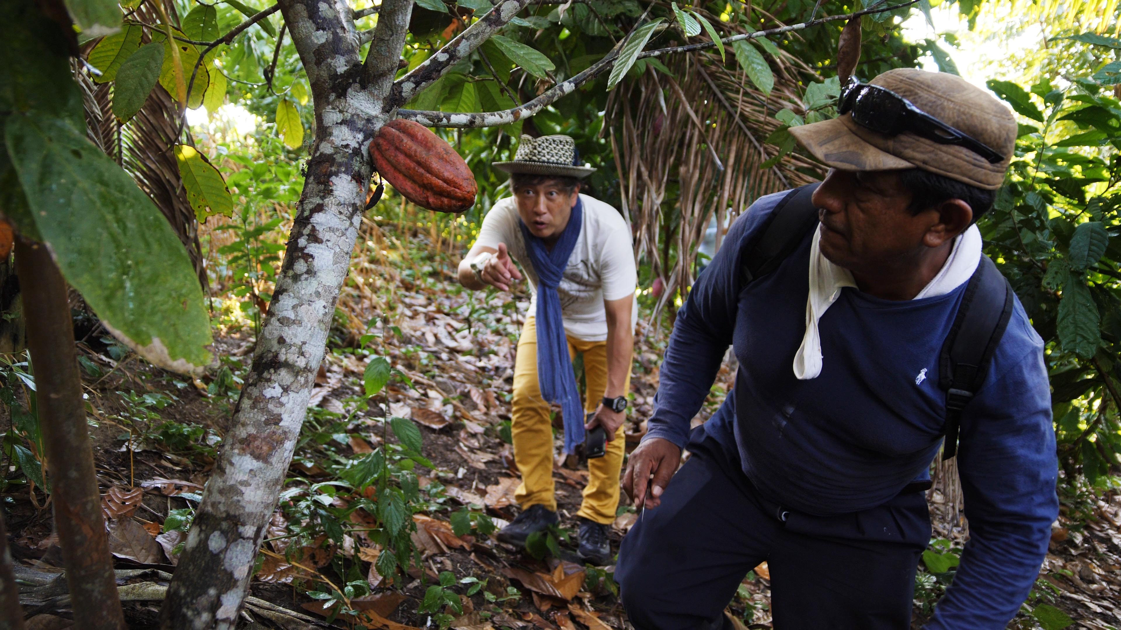 By choosing these three characters, I wanted to illustrate the different creative directions each of them takes: Susumu Koyama is a creative genius inventing surprising flavor combinations and sweeping the international awards with his exquisite bonbons. From the luxury and order of his Japanese store complex to the farmlands hidden in the jungles of Peru, the contrast is high and the experience is humbling. I wanted to capture how Koyama tastes cacao pods in the wild and to witness how he develops a new appreciation for the workers who bring him his prime ingredient - the cacao.