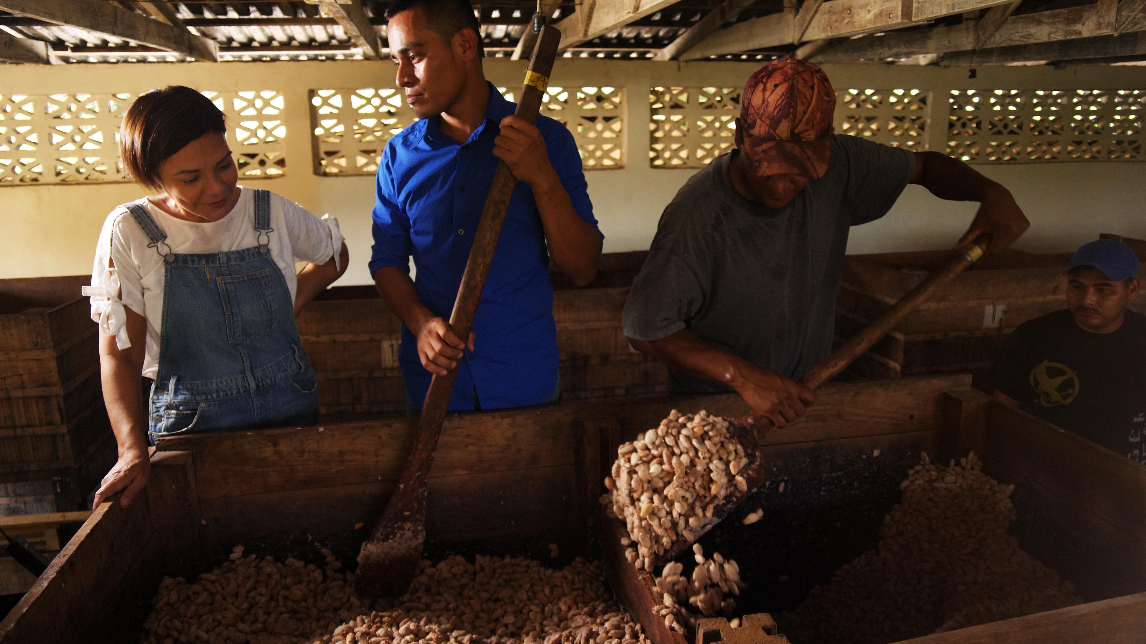 Maribel Lieberman makes her signature ganaches, which look more like works of art than something edible, but when you taste them you are transported to a different place. Making chocolate is a way to express her heritage and to represent her native Honduras and its flavors to the world. For me it was important to also subtly show how women entrepreneurs can empower other women and help them find their own way. In her native Honduras, Maribel met with local women cacao-producers and brought them a selection of some of her own chocolates. Tasting the final product is a way of closing the circle from producer to final consumer and therefore gives a valuable perspective to the farmers - knowing what the chocolatiers are looking for the farmers can focus their work on making a better quality, sellable product. Cacao is a hard crop grown by smallholders who are rarely fairly compensated for their arduous work. Being a woman in the industry is even more challenging and no one knows this better than Maribel.