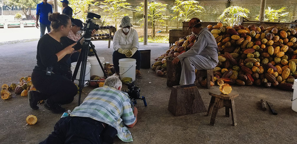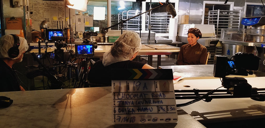 Post-Production took quite awhile as the team had to sort through 170+ hours of footage. Director Tanya Chuturkova switched to the role of editor and the raw shots were molded into a 90 minutes film. With the help of chocolate historian Lee Scott Theisen, Ph.D., aka The Chocolate Guru, the storyline became clear and historical accuracy was assured. Once the picture was locked, it was in the hands of Kim E. Wang to finish all the digital effects and color-grade the film, give it a cinematic look and make sure every frame is a picture.
